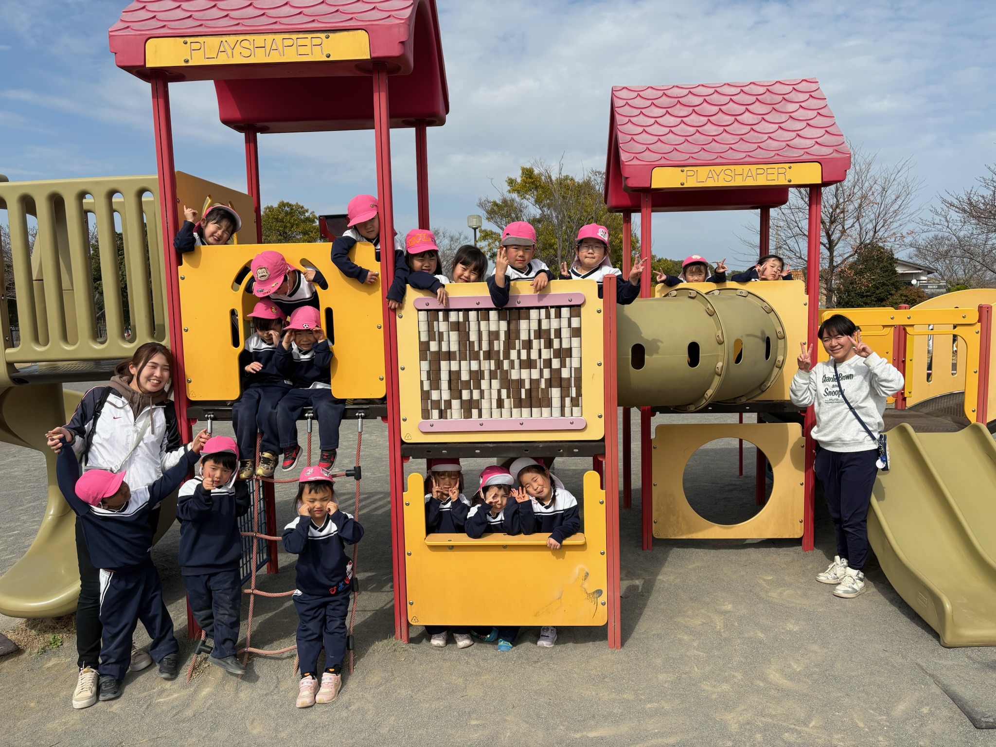 今日はとても暖かく半袖姿でお外遊びを楽しむさくら組さん🌸 4月もスタートし、少しお兄さんお姉さんになって新しい活動を楽しみにしています♪ 今日は、お外でたくさん遊びました! 新しいお友だちも増え、仲良くバイクやお砂場遊び、滑り台で遊んでいましたよ☆ 笑顔いっぱいのお友だちです♪ これから気温も上がってきますので、カバンに半袖を入れていただ