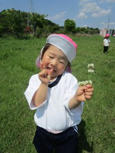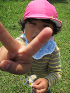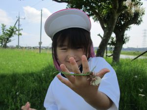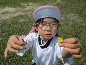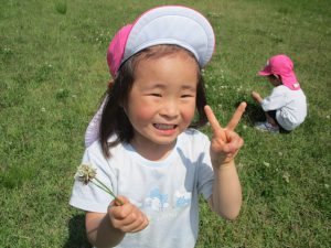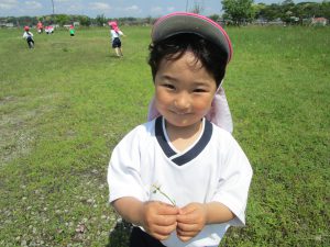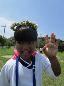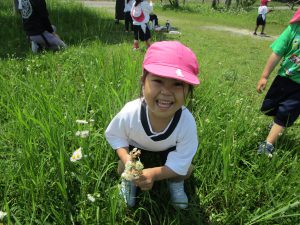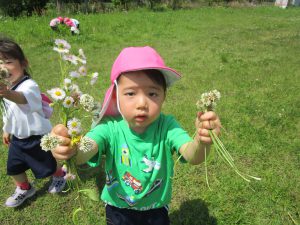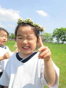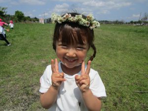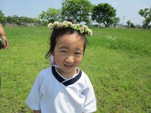 お花摘みに夢中になり、みんなで花束を作ったり、お花の冠や指輪を付けて嬉しそうでした!
