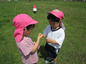 虫探しでは、てんとう虫を見つけ、見せ合う姿もみられました。