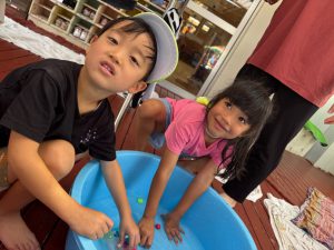 スーパーボールが入った氷が大人気!夢中でボール拾いを楽しんでいましたよ!