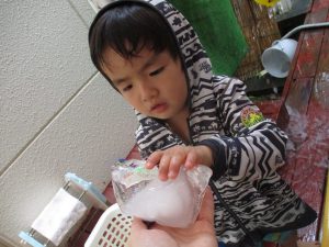 「つめたーい!」「こおりだ!」と、冷たい氷に大興奮!