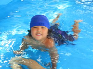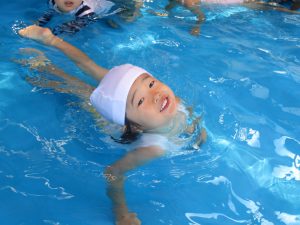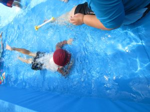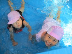水に顔をつけてみたり、水の中をくまさんやわにさん歩きをしてみたり...