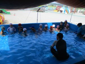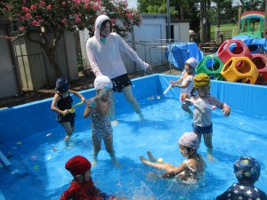 夏の生活の流れも覚えてきて、プールも自ら進んで着替えて、水遊びを楽しんでいます!