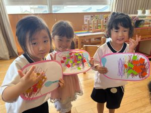 慎重にはさみで折り紙を切り、コツをつかむと嬉しそうでした!