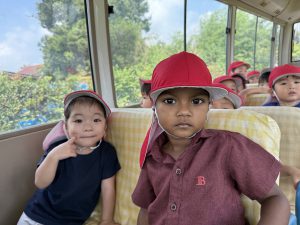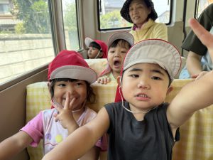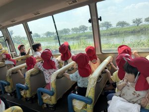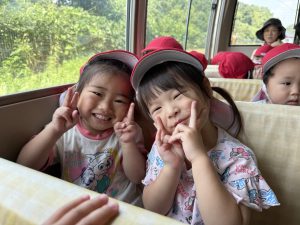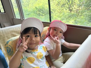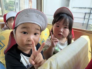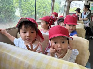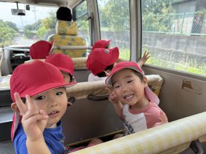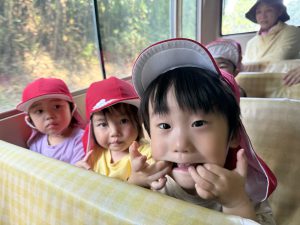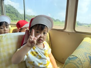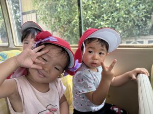 今日は、お友達が楽しみにしていた園外保育の日でした。バスに乗るのは2回目となりますが、バスを見ると「乗りたい!」「どこに行くの~!」と朝からワクワクしていましたよ♪