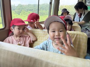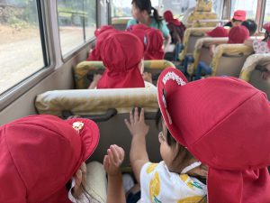 バスのお約束を守り、景色を楽しんだり、はたらくくるまを見つけたりと、バスの中は楽しそうな会話が飛び交っていました☆
