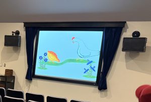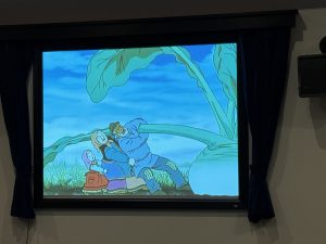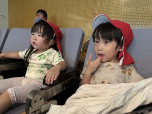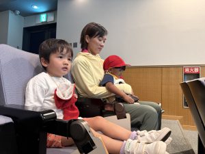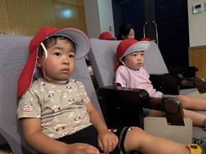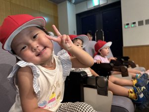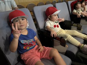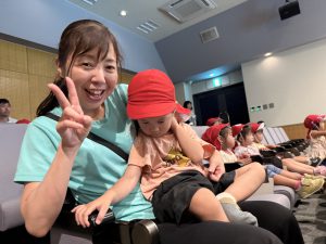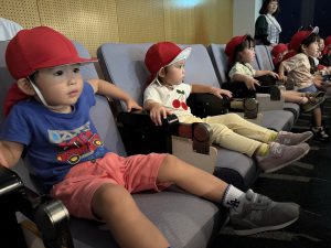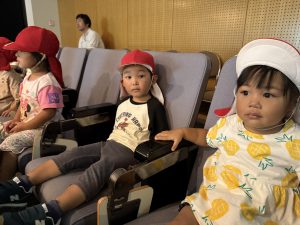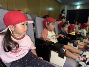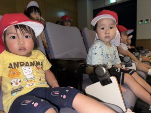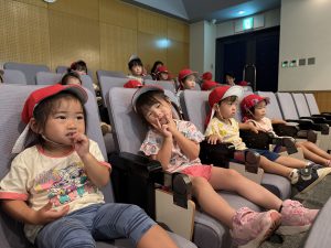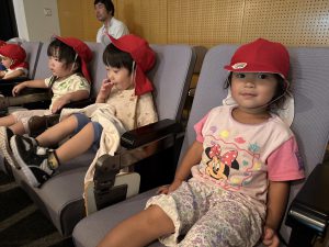 一人ひとり椅子に座り、映画が始まると興味津々で見ていましたよ。「みてみて~!」「かくれんぼしてる」