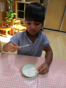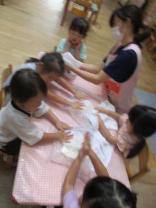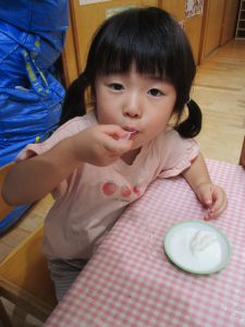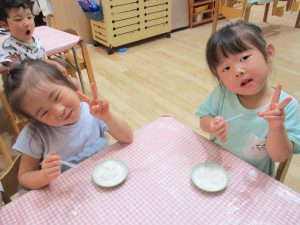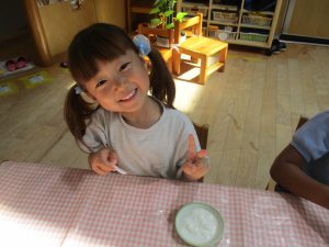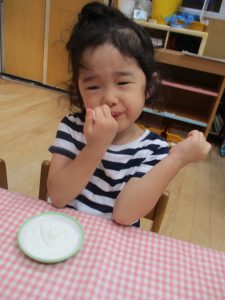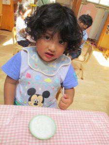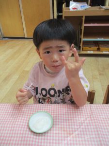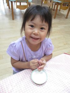 固まってくるのが嬉しくて、給食の先生に「どうかな?」と確認するみんなが可愛かったです♡