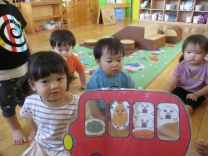 今日は、おべんとうバスのペープサートを見ました。