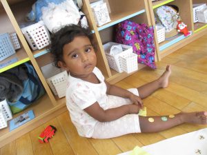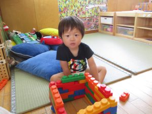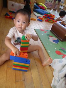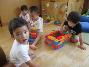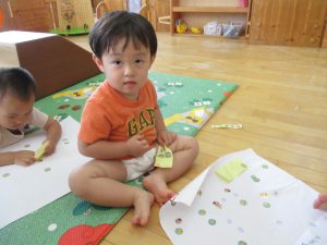 水遊びの後は、シール貼りやソフトブロックで遊びました。