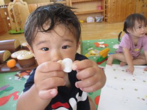 「もういいよー」と簡単な言葉のやり取りを楽しんでいます。