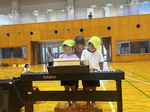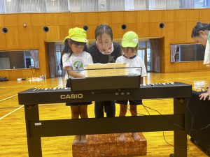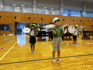 この日は、4歳児さんと初めて運動会で披露する園歌の演奏を合わせました!