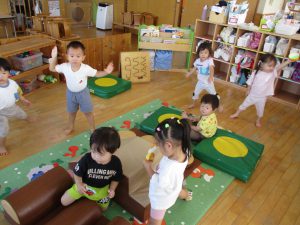 季節の歌(とんぼ・どんぐり・まつぼっくり)を体を動かしながら歌う姿がかわいらしいです♪