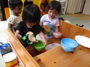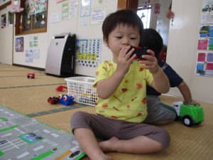 支援センターでは、おままごとや車の玩具で遊びました♪