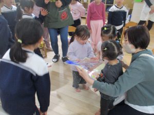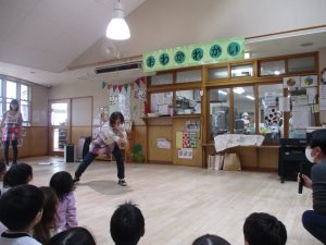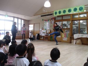 卒園児vs在園児に分かれ、代表の先生たちによるジェスチャーゲームを行いました。