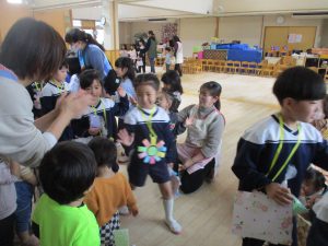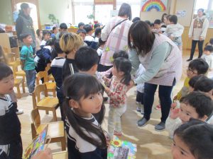 次は在園児さんからひまわり組さんへお別れの言葉とプレゼントを渡しました。