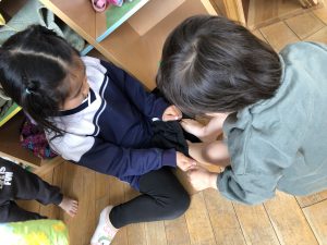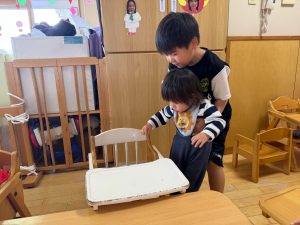 当日は0歳児から4歳児までのお友だちのクラスに行き、いつもとは違うお友だちと一緒に、楽しく