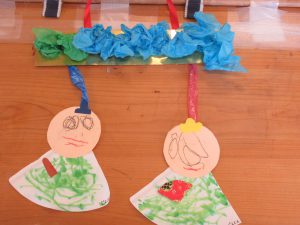 きりん組☆ひなまつり製作☆ 2024/02/09 あかりをつけましょ、ぼんぼりに~♪ おはなをあげましょ、もものはな~♪ きりん組のひな祭り製作は、コーヒーフィルターに水性ペンを使い、模様を描いて、霧吹きを使い、お水をかけると、描いた模様が滲んでいき、『わー!!きれいー!!』と喜ぶ子どもたちでした🌟 お部屋に飾ってあるので、こども園祭のときに、ぜひ見ていってくださいね☆☆ ホールには、素敵なひな人形が飾ってあり、『これ何?』『ひなまつりだー!!』と、じっくり観察している子どもたちです! ひな祭り集会、楽しみだね🌸🌸