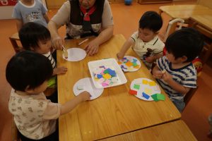 うさぎ組は、傘の製作にも取り組みました。のりの上に折り紙を上手に貼ることができました👏🏻‼️