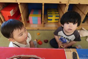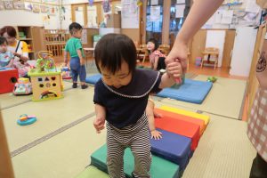 前回のブログも雨の日でしたが、今回も☔ですね💦これから雨の日が増えそうなので、室内でも伸び伸び楽しめるよう色々な遊びを提案していきます。