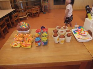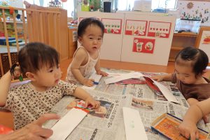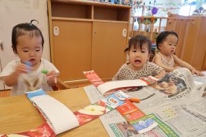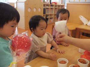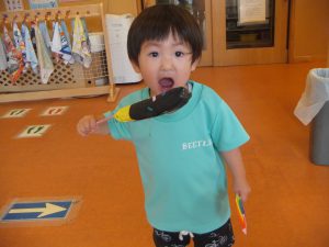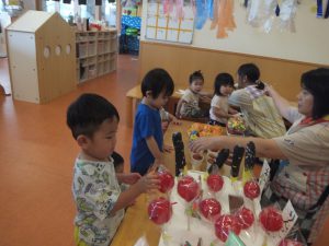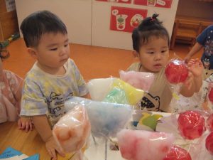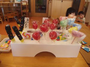 0・1歳児のお部屋でも、お祭りごっこをして楽しみましたよ♡