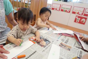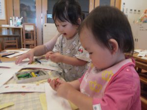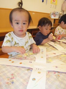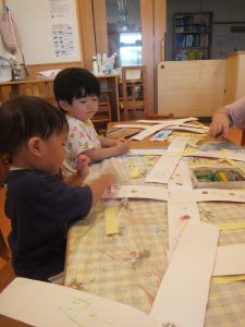 シールを貼ったりと思いおもいに手を動かして