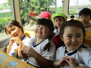 バスに乗り走り出すと、「ここが、私のおうちだよ!」「かわだー!!」と隣に座っているお友だちや保育者と、お話しも楽しんでいました🎶