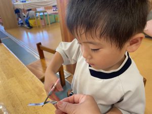 今年度初めて、ハサミの1回切りに挑戦しました✂