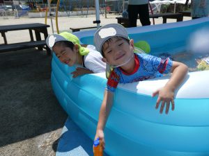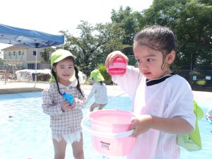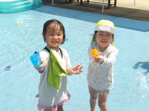 水鉄砲やバケツなどの玩具はお友達と上手に交代しながら遊んでいました♪
