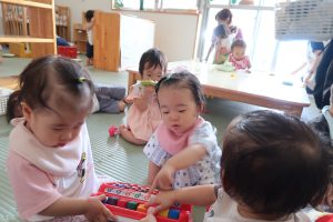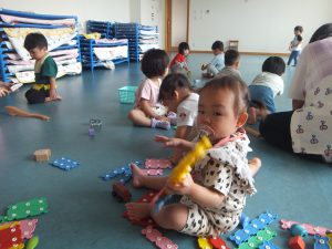 いつもと違う玩具や広いお部屋にウキウキワクワクのお友だち🥰