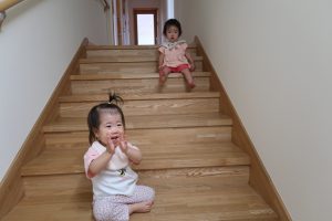 先週は水害の垂直避難訓練があり、それに先立ってうさぎ組さんはお二階のお部屋を見に行きました。