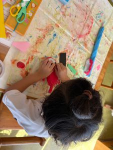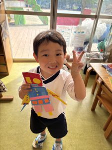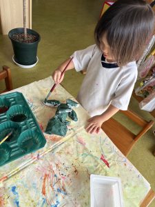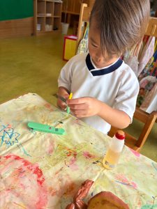 室内では、文化祭で飾る製作を行いました!テーマは【自分が乗りたいもの】です。絵の具で色を付けた後に画用紙などで飾り付けをして完成です!自分たちで色を決め、筆を使って染め上げました。みんなが乗りたいものはどんなものなのか、楽しみにしていて下さいね🎶