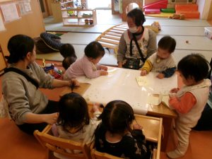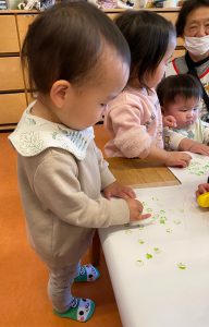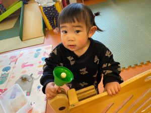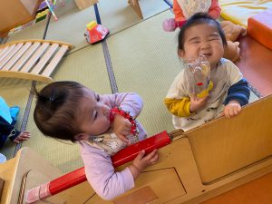 今日は、午前中風が冷たかったので室内遊びを楽しみました。