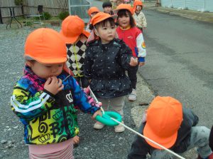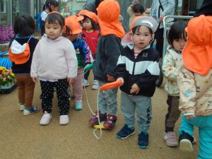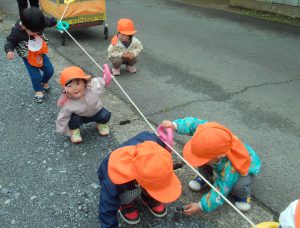 今日も、お散歩ロープを使って園の周辺を散歩しました。
