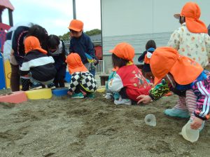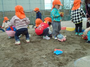 園に戻り水分補給を済ませたら、砂場へレッツ・ゴー✊