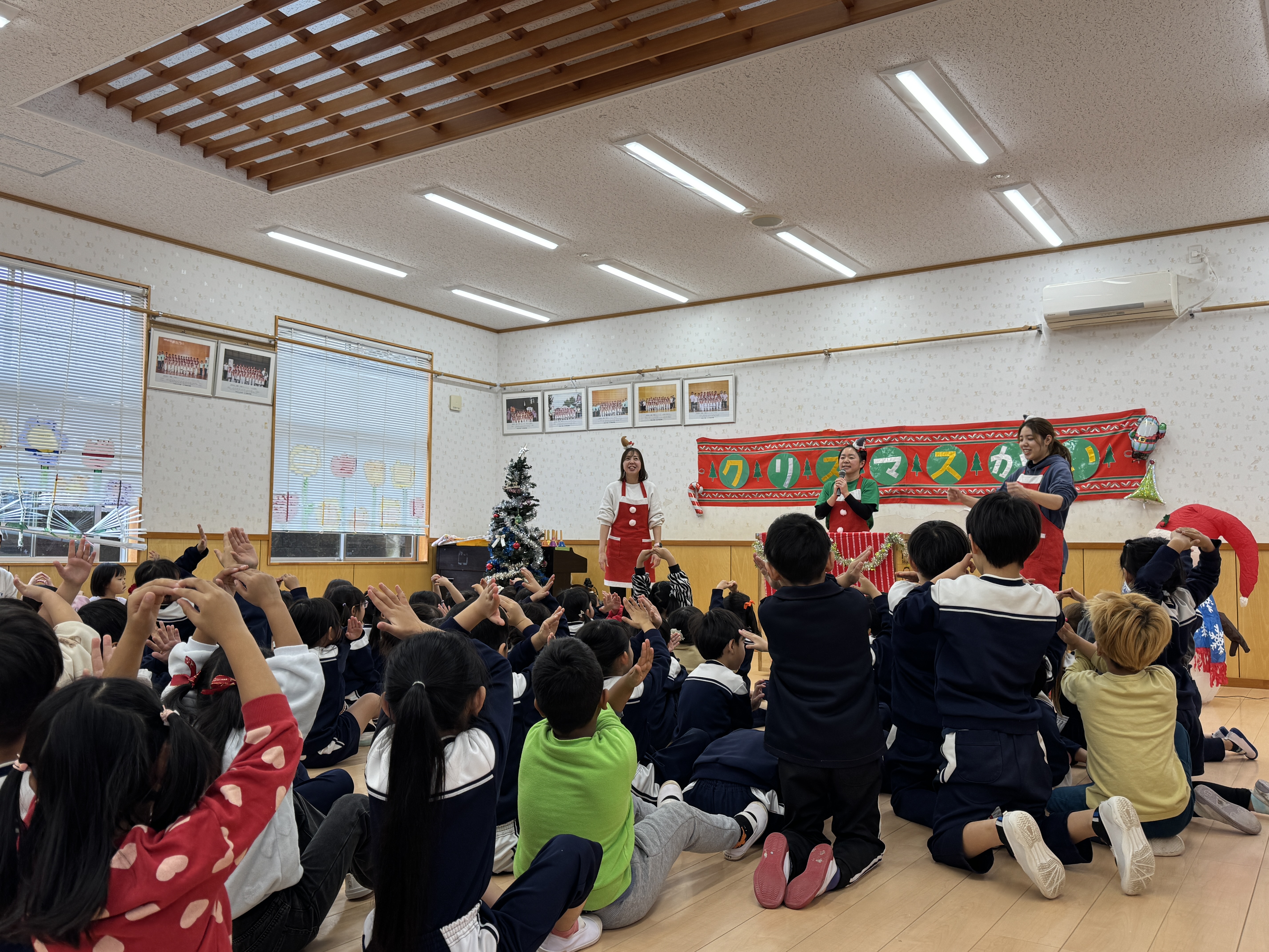 今日12月25日はクリスマス🎄 「お家でケーキ食べたよ!」 「プレゼントもらったんだ♪」と楽しいお話を聞かせてくれる子ども達もいました。 そして今日は保育園でもクリスマス会!とても楽しみに登園してくれました。 オープニングはハンドベル「星に願いを」の演奏から。 紙芝居で由来を知り、「ふとりすぎちゃったサンタさん」のダンスや 「あわてんぼうのサンタクロース」を歌ったりしました