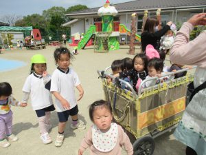 4月から入園したお友だちはまだ慣らし保育期間中でまだ寂しさいっぱいの様子ですが、散歩をしたり、お外で遊んだりして過ごしています。